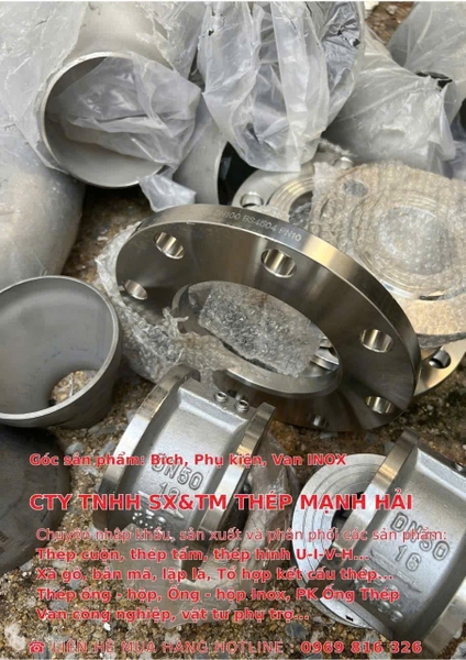 Phụ kiện nối ống inox tại Thép Mạnh Hải bao gồm đầy đủ các loại theo tiêu chuẩn ASME B16.9 (butt-weld), ASME B16.5 (flanges) và phụ kiện tri-clamp sanitary cho thực phẩm và dược phẩm. Toàn bộ phụ kiện áp lực đều được cung cấp kèm CO/CQ theo ASTM A403 (wrought fittings) và ASTM A182 (forged flanges) từ nhà máy sản xuất gốc: