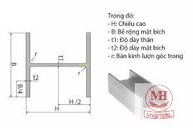 Kích thước, trọng lượng thép I H các tiêu chuẩn thông dụng