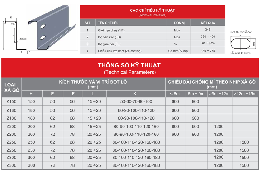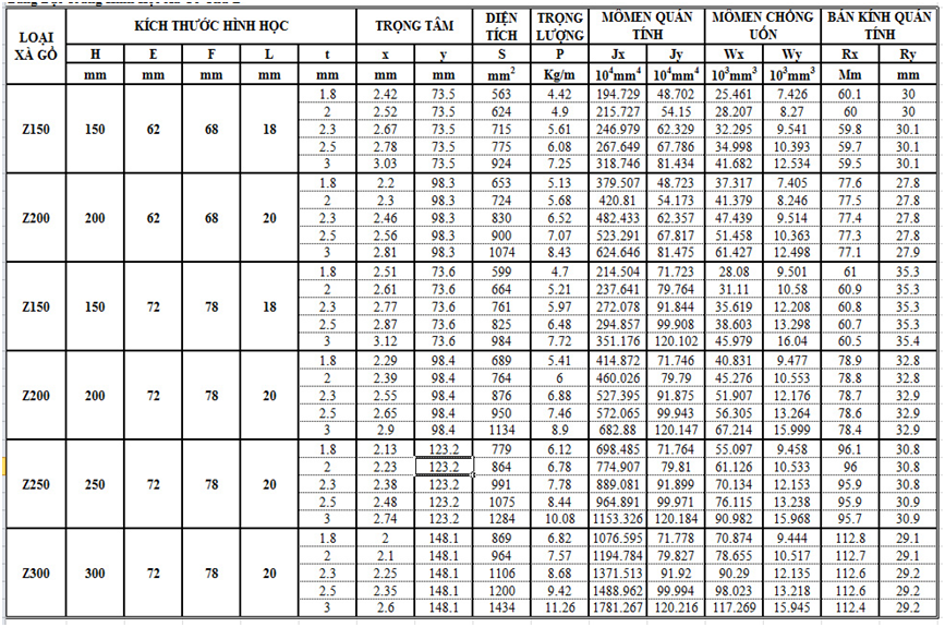 II. Thông số Xà gồ chữ Z (Thép hình Z)